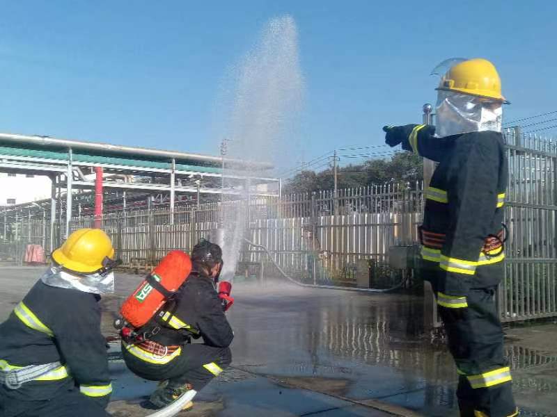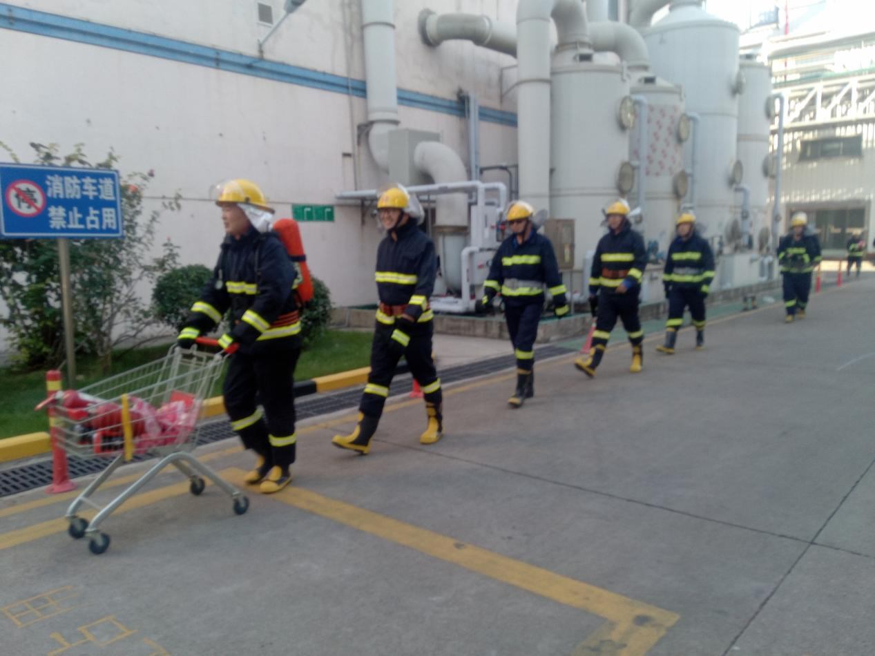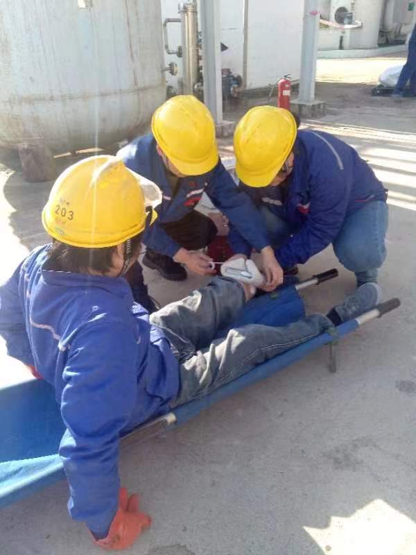 2025 年“全民消防,生命至上-安全用火用電”為主題的消防安全月,安全生產管理科于2025年11月25日下午,在酒石酸雙氧水罐區組織進行一次消防應急疏散演練。演練內容為: 雙氧水罐區儲槽(南V1101A)因九級大風天氣吹落管架線槽不銹鋼蓋板,落到底部軟連接處,致使不銹鋼軟管破損,導致雙氧水泄漏,造成雙氧水流淌,流至低位槽溢出,積熱引燃周邊堆場雜物,應急處置過程中造成一員工腳踝部灼燙傷。 在現場總指揮的指揮下,演練工作緊張有序開展, 提高公司員工的風險防范意識,加強員工在面對突發災害時的防災滅火基本技能,和應對環境事件的處置能力,驗證了公司應急預案的可行性,檢驗了應急器材的可用性,進一步提高公司應急處置能力,筑牢公司安全生產防線。